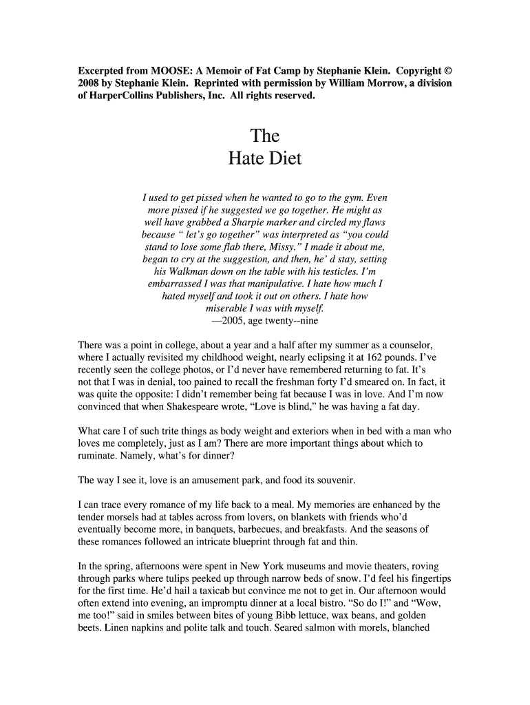 Fill out your form hate diet online with pdfFiller!