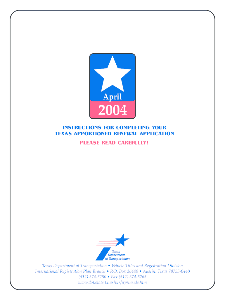 The Texas Apportioned Registration Renewal Application is a government form used by vehicle owners in Texas to renew their apportioned registration credentials under the International Registration Plan (IRP).
