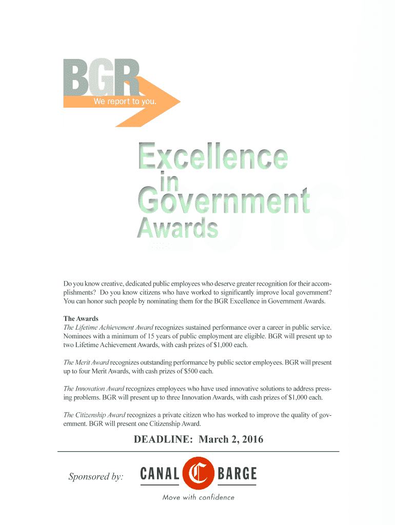 Excellence in Government 2016 Awards Do you know creative, dedicated public employees who deserve greater recognition for their accomplishments? Do you know citizens who have worked to significantly