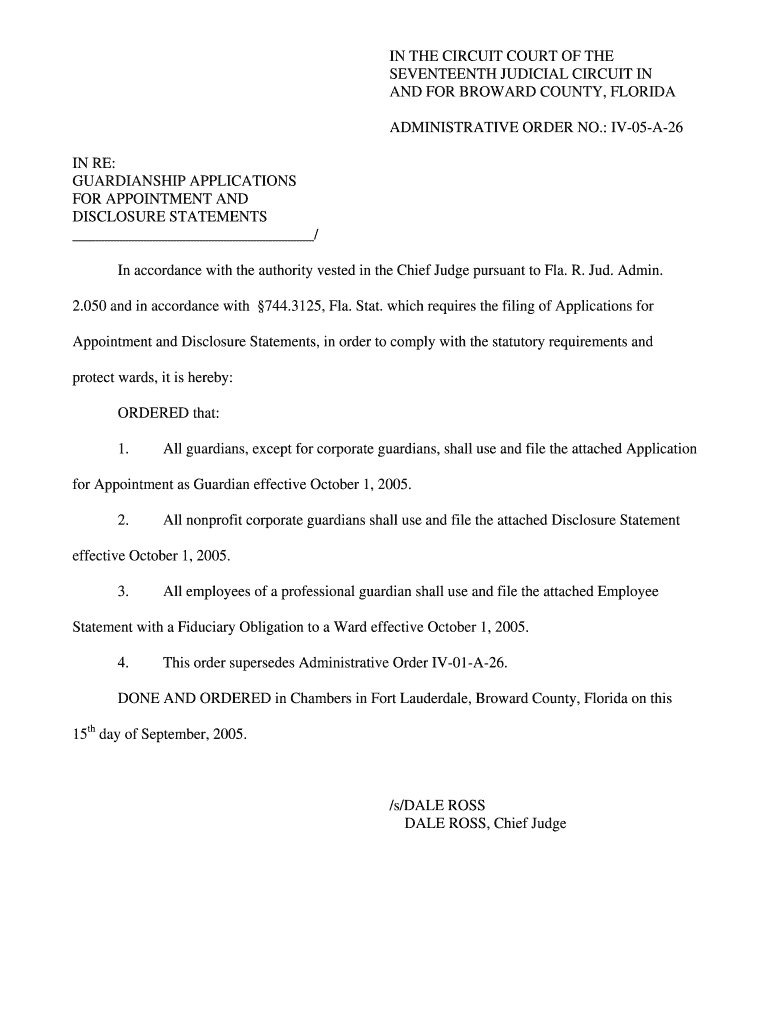 This document outlines the requirements and procedures for guardianship applications in Broward County, Florida, including the appointment of guardians, disclosure statements, and necessary forms