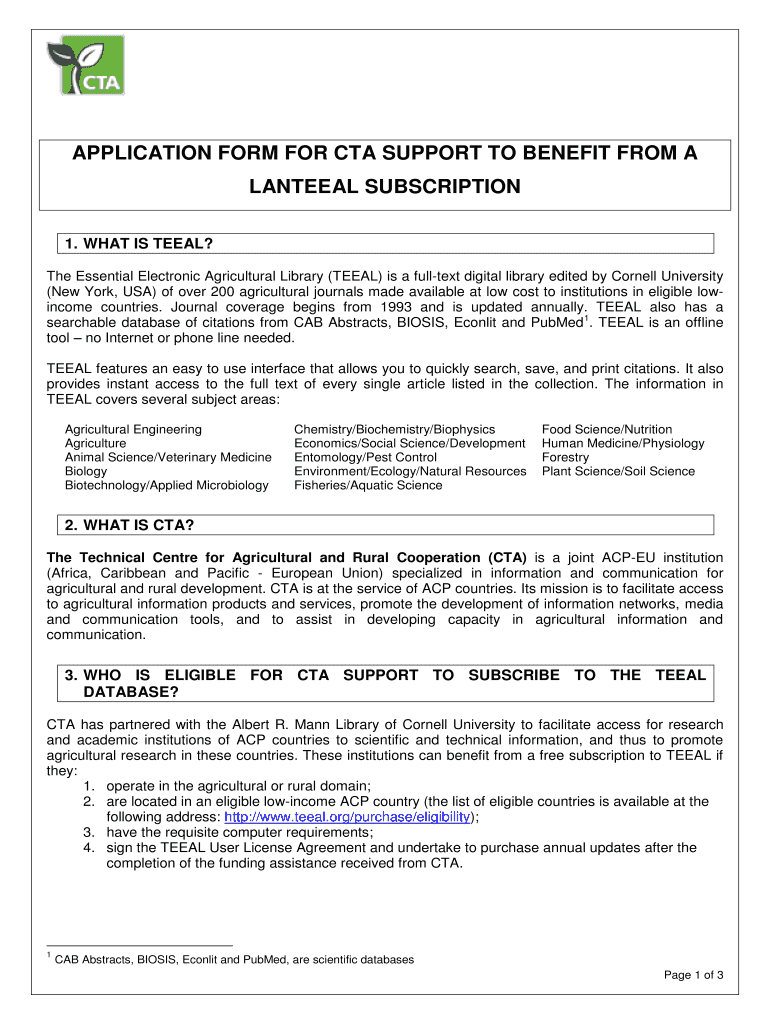 APPLICATION FORM FOR CTA SUPPORT TO BENEFIT FROM A