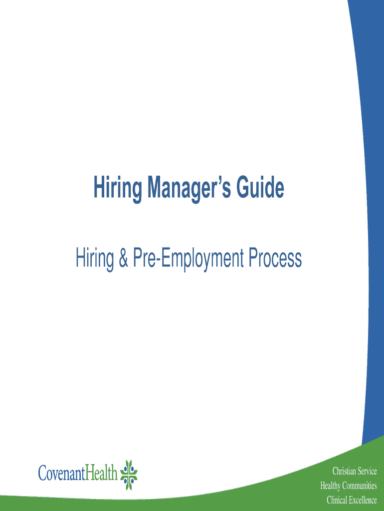 Hiring Managers Guide Hiring & PreEmployment Process Christian Service Healthy Communities Clinical ExcellenceRecruitment Process Hiring manager creates requisitionMinistry specific Approval ProcessRecruiter