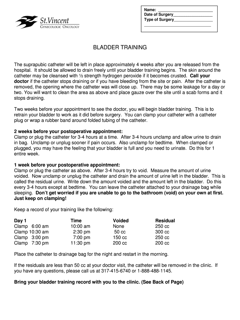 Get the free BLADDER TRAINING - St Vincent Health - stvincent