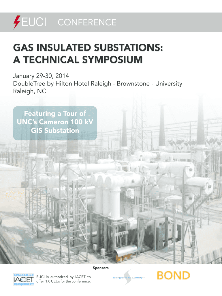 CONFERENCE Gas Insulated Substations: A Technical Symposium January 29-30, 2014 Doublet by Hilton Hotel Raleigh — Brownstone — University Raleigh, NC Featuring a Tour of UNC s Cameron 100 KV GIS