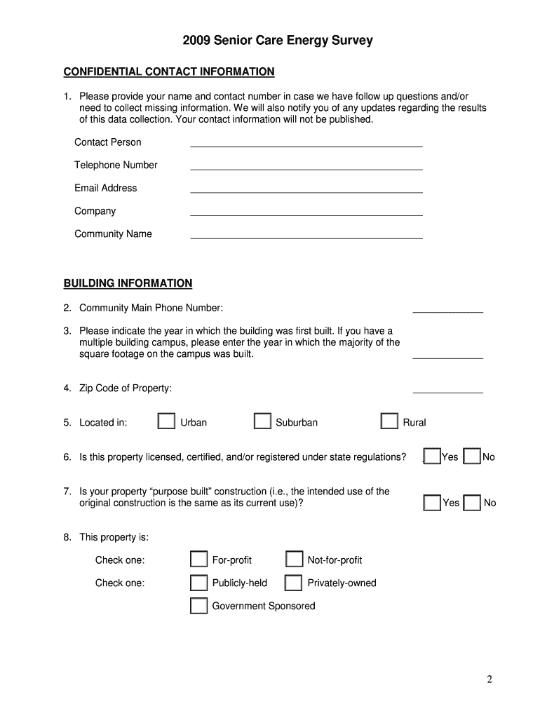 2009 Senior Care Energy Survey Submit Form Now more than ever, senior care communities are struggling with higher energy costs. The U.S. Energy Information Administration forecast that electricity