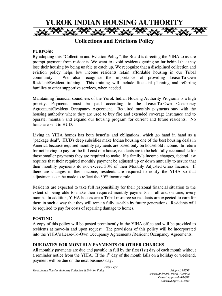 Get the free Yurok Indian Housing Authority 4108 Collection Eviction Policy Revised