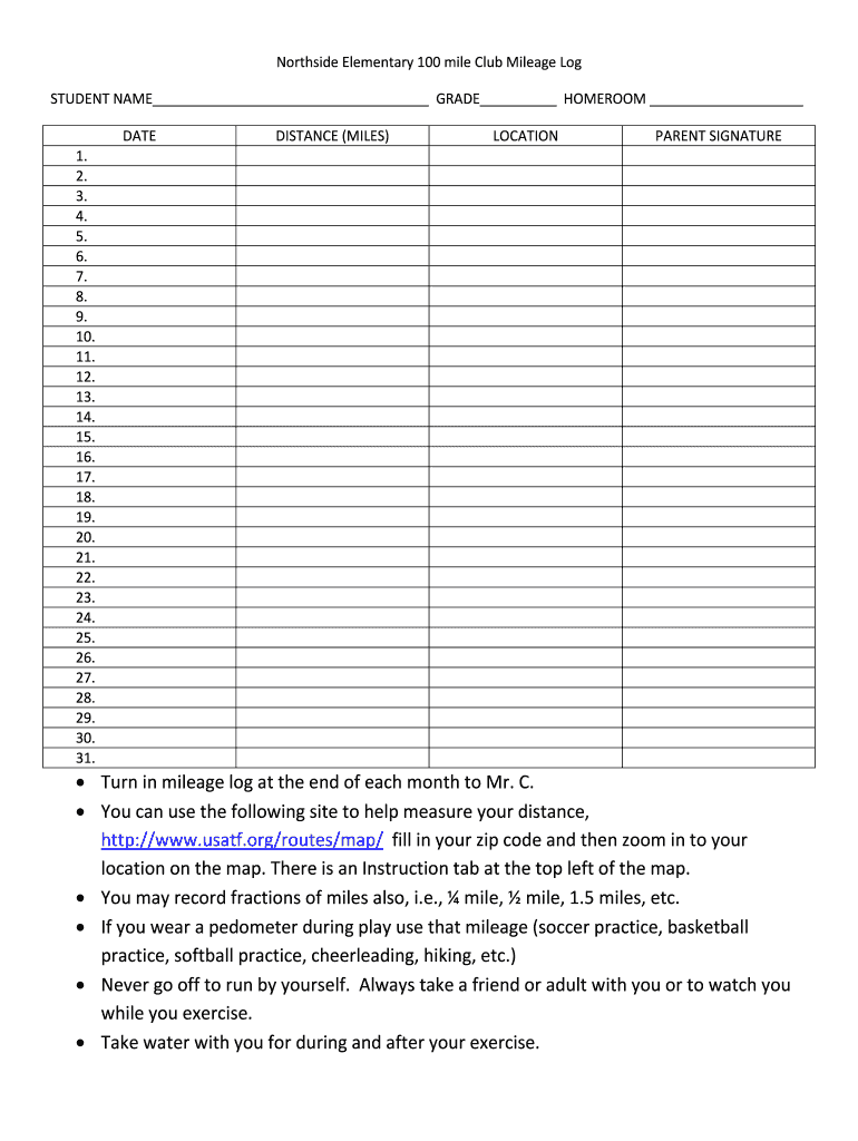 Note: The content above is a general guide and may vary depending on the specific requirements and procedures of Northside Elementary's 100 mile program.