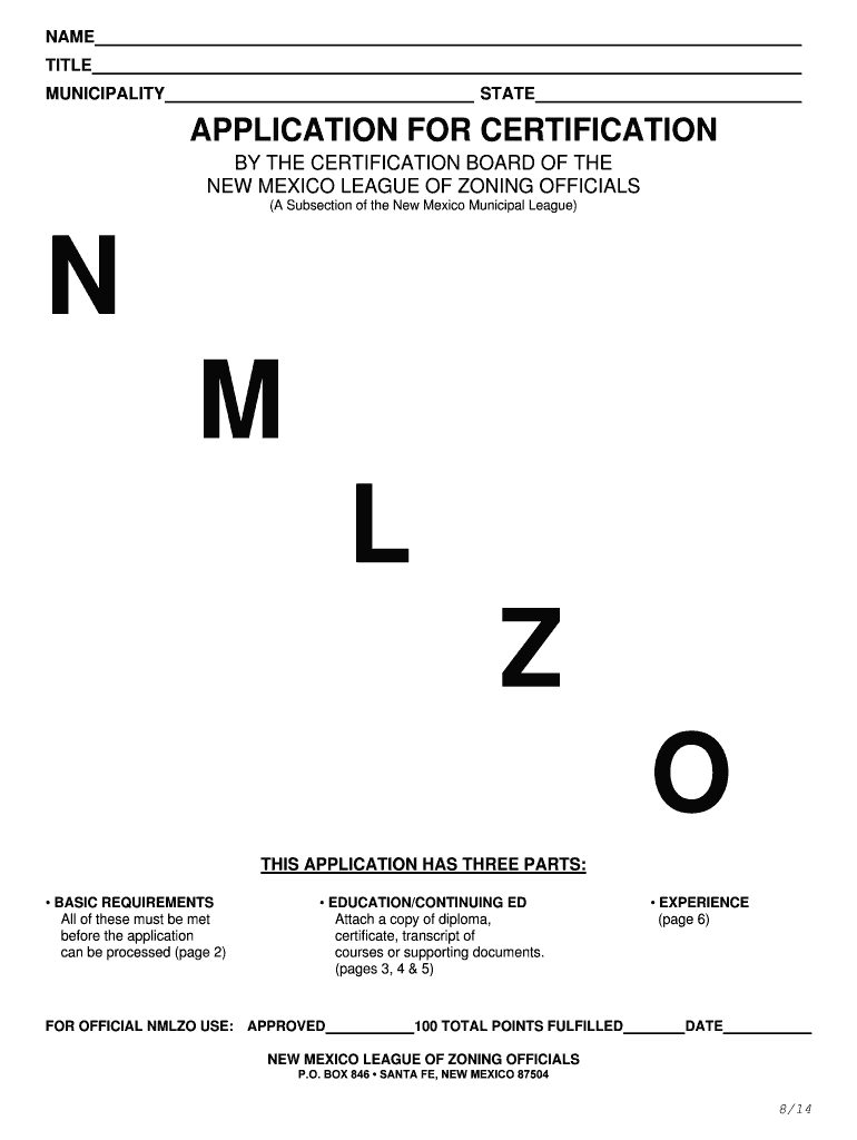 APPLICATION FOR CERTIFICATION ... All decisions regarding the NLO Certification Process shall be final as determined by the NLO .... September 2014 Workshop Two Series 14. May ... *Co-Sponsored by