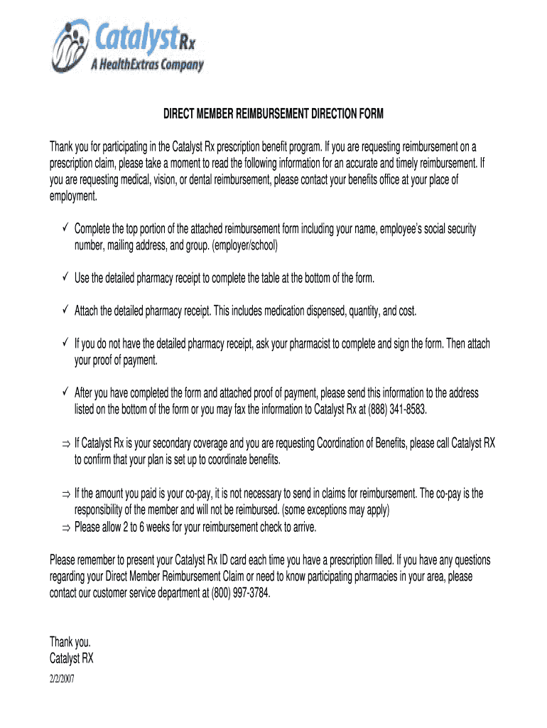 Thank you for participating in the Catalyst Rx prescription benefit program. If you are requesting reimbursement on a