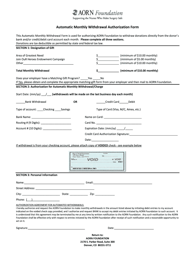 Automatic Monthly Withdrawal Authorization Form This Automatic Monthly Withdrawal Form is used for authorizing BORN Foundation to withdraw donations directly from the donors bank and/or credit/debit