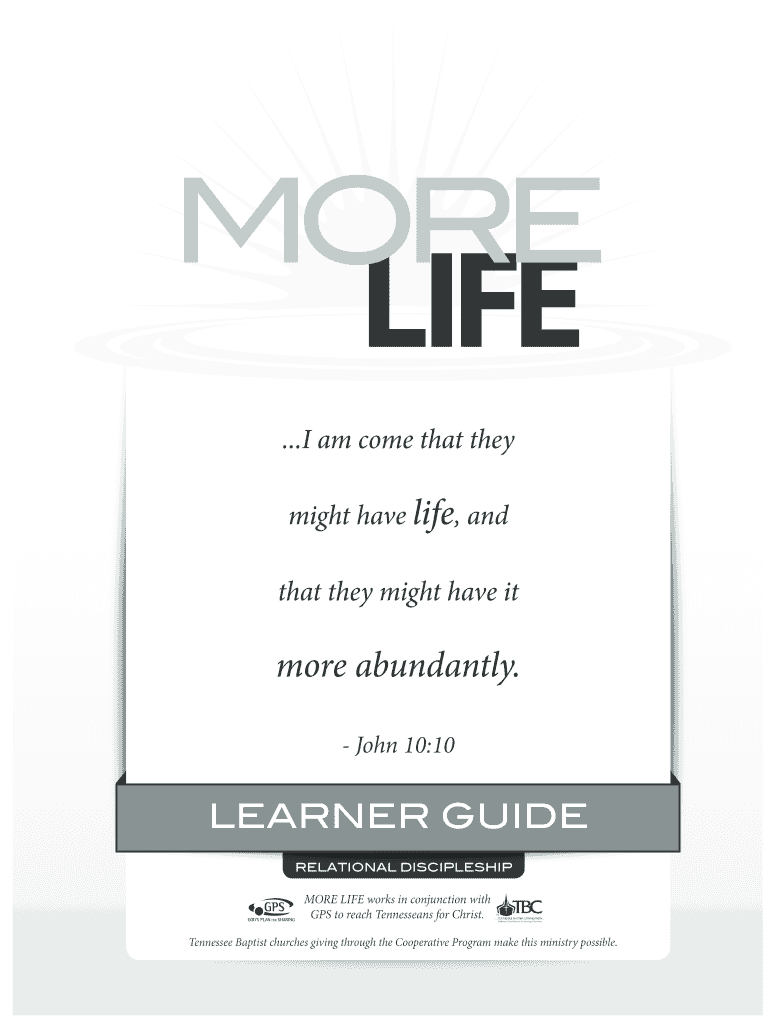 ... I am come that they might have life, and that they might have it more abundantly. John 10:10 LEARNER GUIDE RELATIONAL DISCIPLESHIP MORE LIFE works in conjunction with GPS to reach Tennesseans