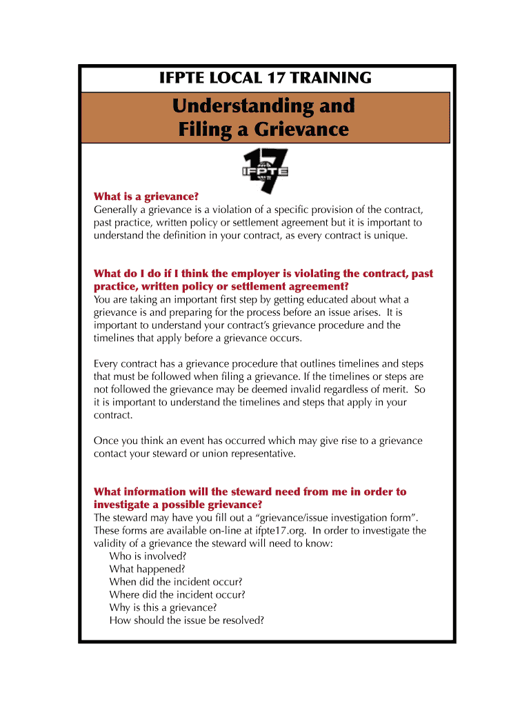 Get the free IFPTE LOCAL 17 TRAINING