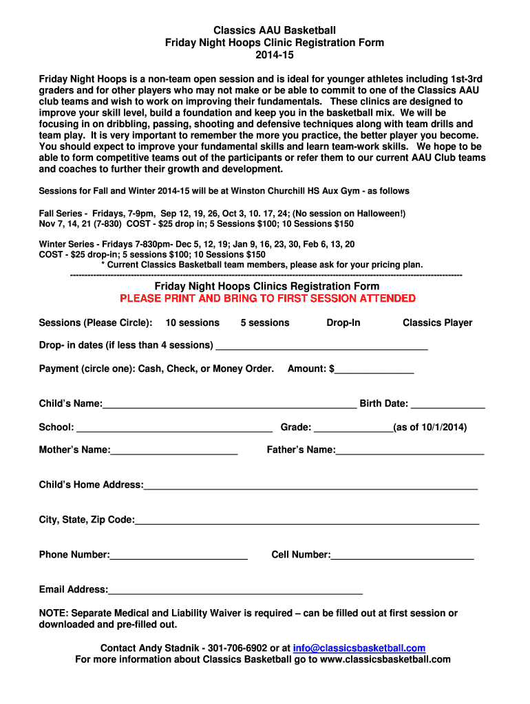Friday Night Hoops Clinic Registration Form