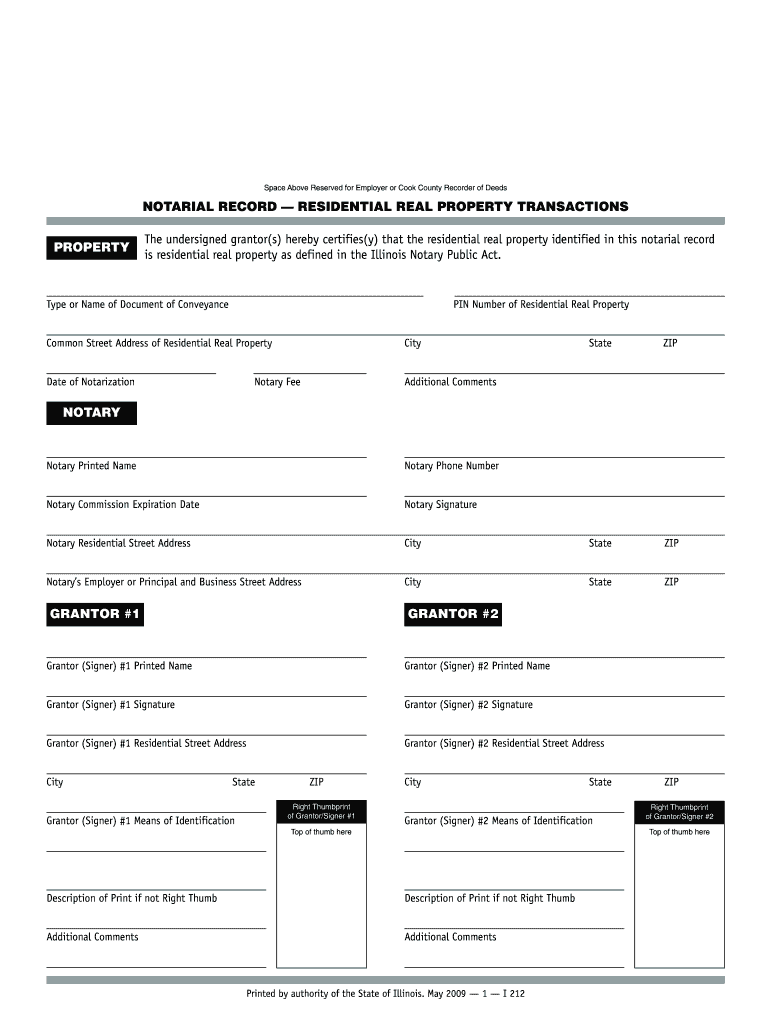 Space Above Reserved for Employer or Cook County Recorder of Deeds NOTARIAL RECORD RESIDENTIAL REAL PROPERTY TRANSACTIONS PROPERTY The undersigned granter(s) hereby certifies(y) that the residential