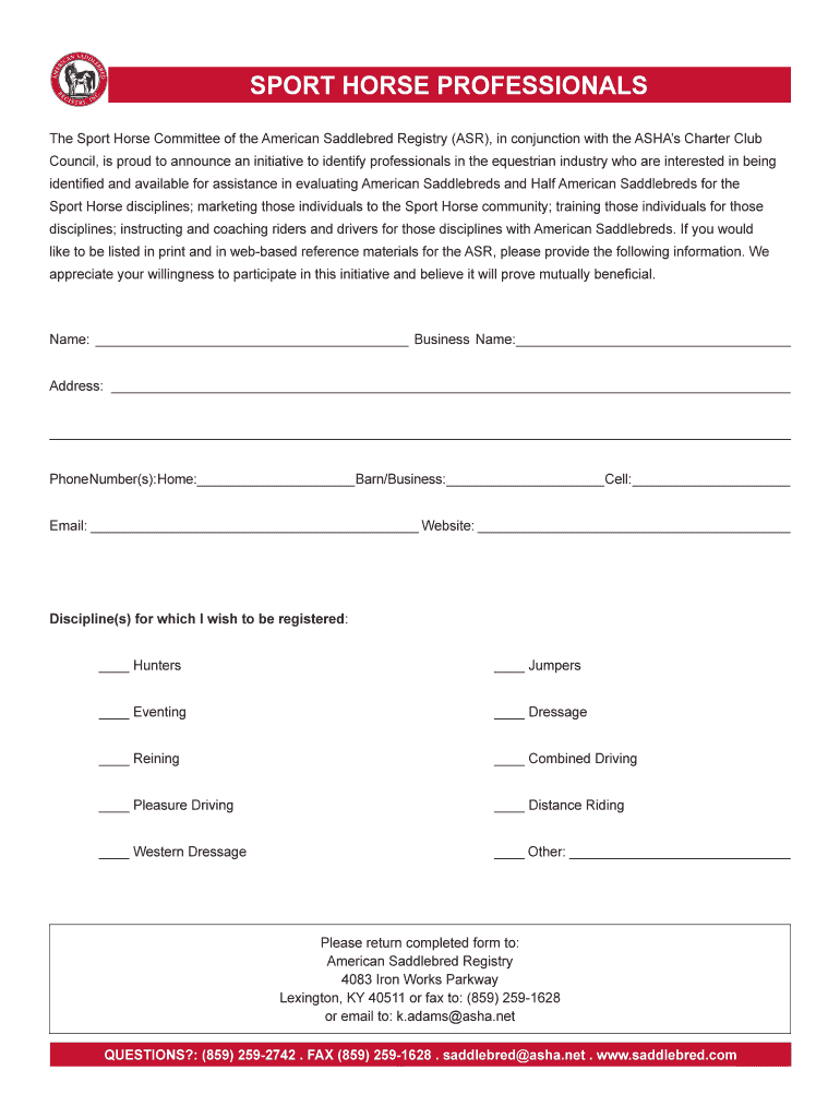 How to fill out sport horse professionals