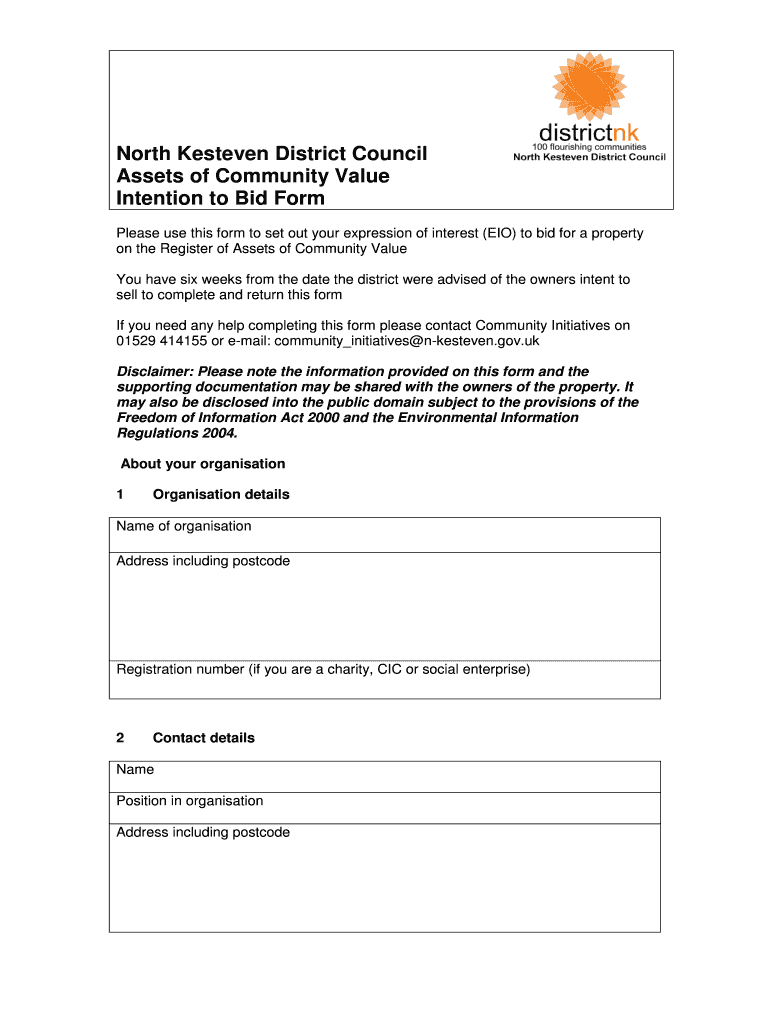 Get the free Assets of community value intention to bid Assets of community value intention to bi...