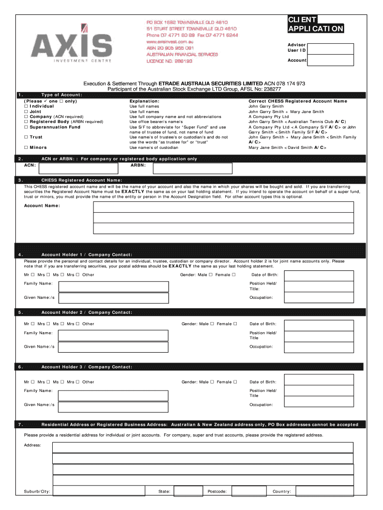 Get the free Client Application Form - Axis Investment Centre