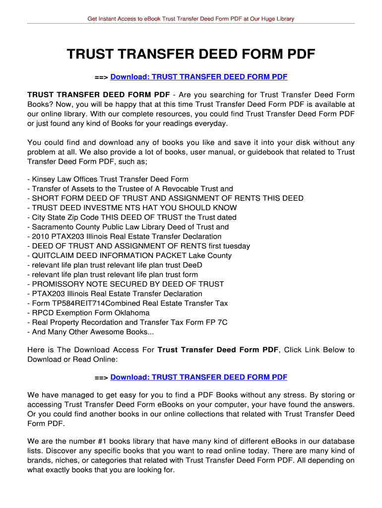 Get Instant Access to e-book Trust Transfer Deed Form PDF at Our Huge Library TRUST TRANSFER DEED FORM PDF Download: TRUST TRANSFER DEED FORM PDF TRUST TRANSFER DEED FORM PDF Are you searching for