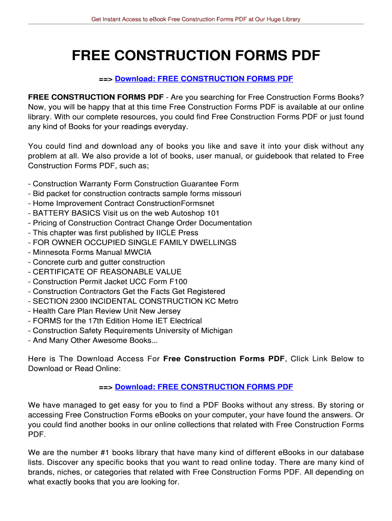 Get Instant Access to e-book Free Construction Forms PDF at Our Huge Library FREE CONSTRUCTION FORMS PDF Download: FREE CONSTRUCTION FORMS PDF FREE CONSTRUCTION FORMS PDF Are you searching for Free