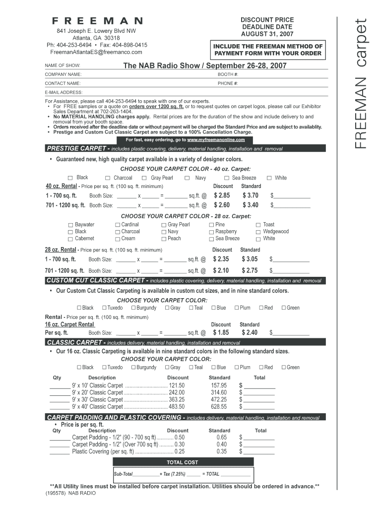 841 Joseph E. Lowery Blvd NW Atlanta, GA 30318 pH: 4042536494 Fax: 4048980415 FreemanAtlantaES freemanco.com INCLUDE THE FREEMAN METHOD OF PAYMENT FORM WITH YOUR ORDER The NAB Radio Show / September