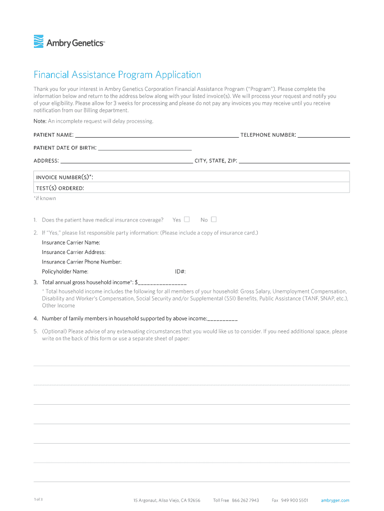 Get the free Financial Assistance Program Application - Ambry Genetics