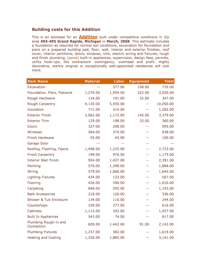 Get the free Building costs for this Addition Addition - bbyohcomb