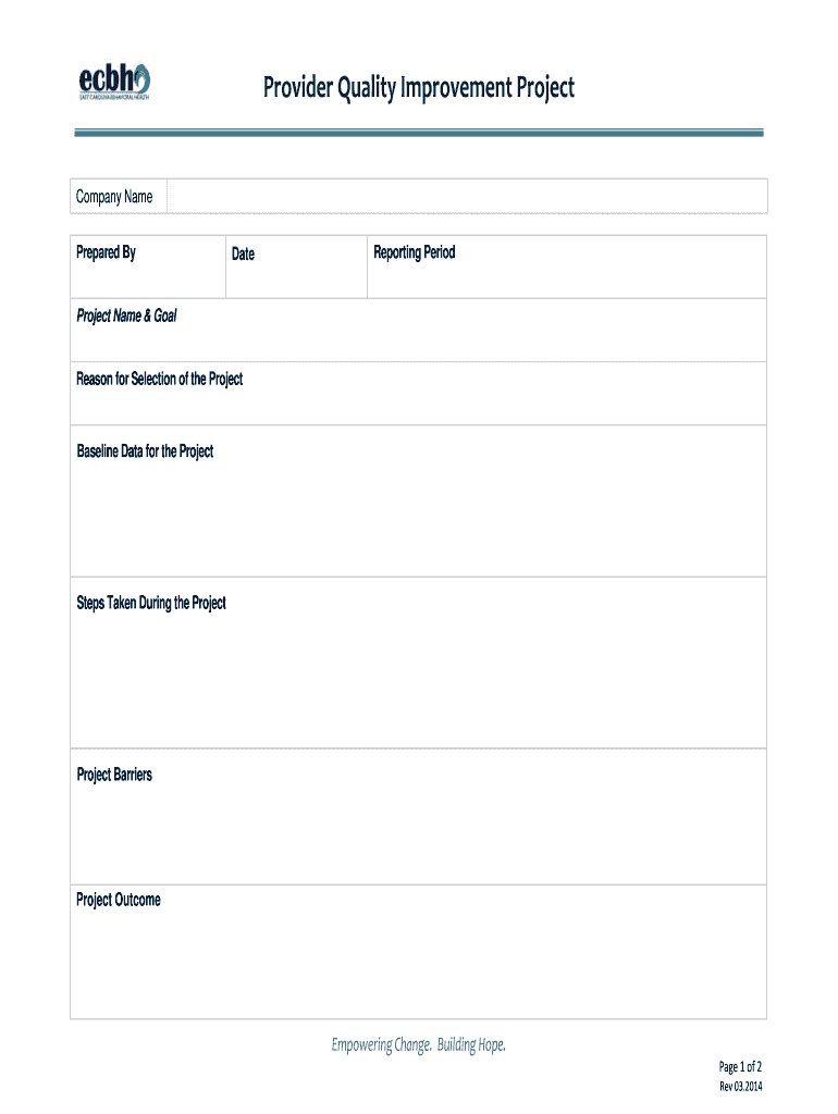 Provider Quality Improvement Project Company Name Prepared By Date Reporting Period Project Name & Goal Reason for Selection of the Project Baseline Data for the Project Steps Taken During the Project