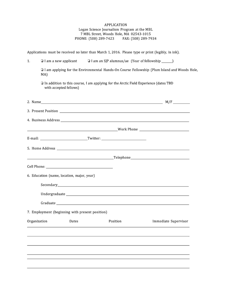 At the Marine Biological Laboratory MBL Logan Science Journalism Program 7 MBL Street Woods Hole, MA 02543 (508) 2897423 duenna MBL.edu www.mbl.edu/sjp 2016 Logan Science Journalism Program Fellowships