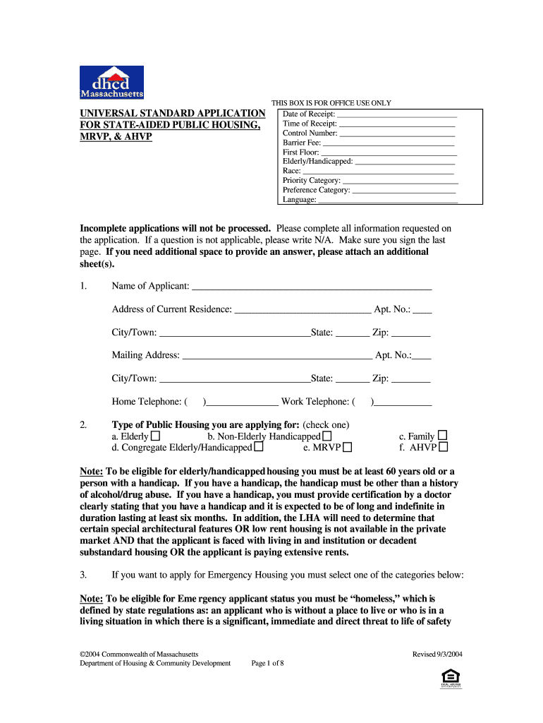 THIS BOX IS FOR OFFICE USE NBCUniversal STANDARD APPLICATION FOR STATEWIDE PUBLIC HOUSING, MVP, & Advocate of Receipt: Time of Receipt: Control Number: Barrier Fee: First Floor: Elderly/Handicapped: