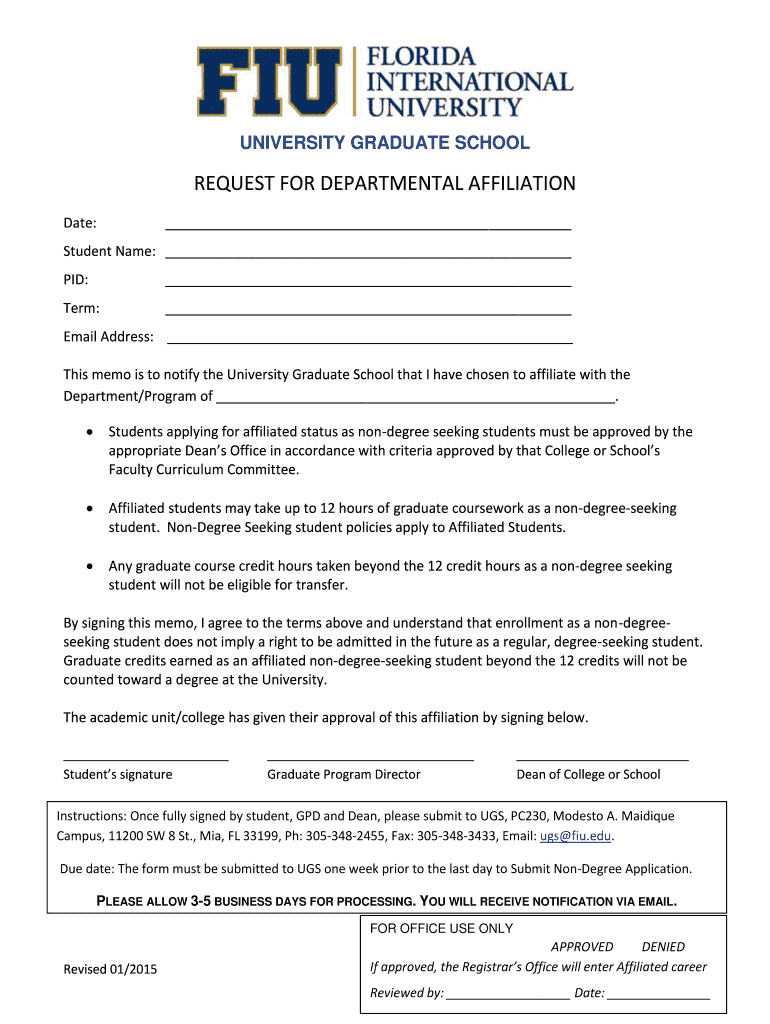Get the free REQUEST FOR DEPARTMENTAL AFFILIATION