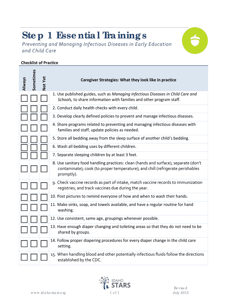 The checklist is designed for use by early education and child care providers in Idaho who are responsible for preventing and managing infectious diseases in their facilities.