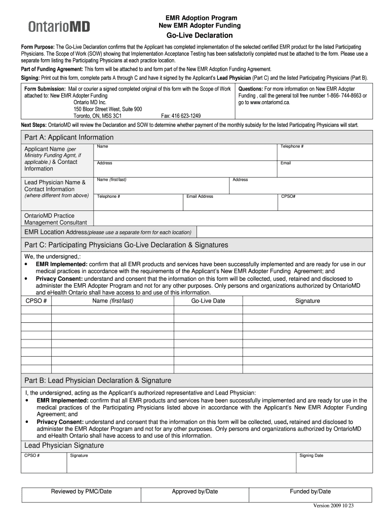 Get the free NewEMRAdopterGoLiveDeclaration v2009 10 23.doc - ontariomd