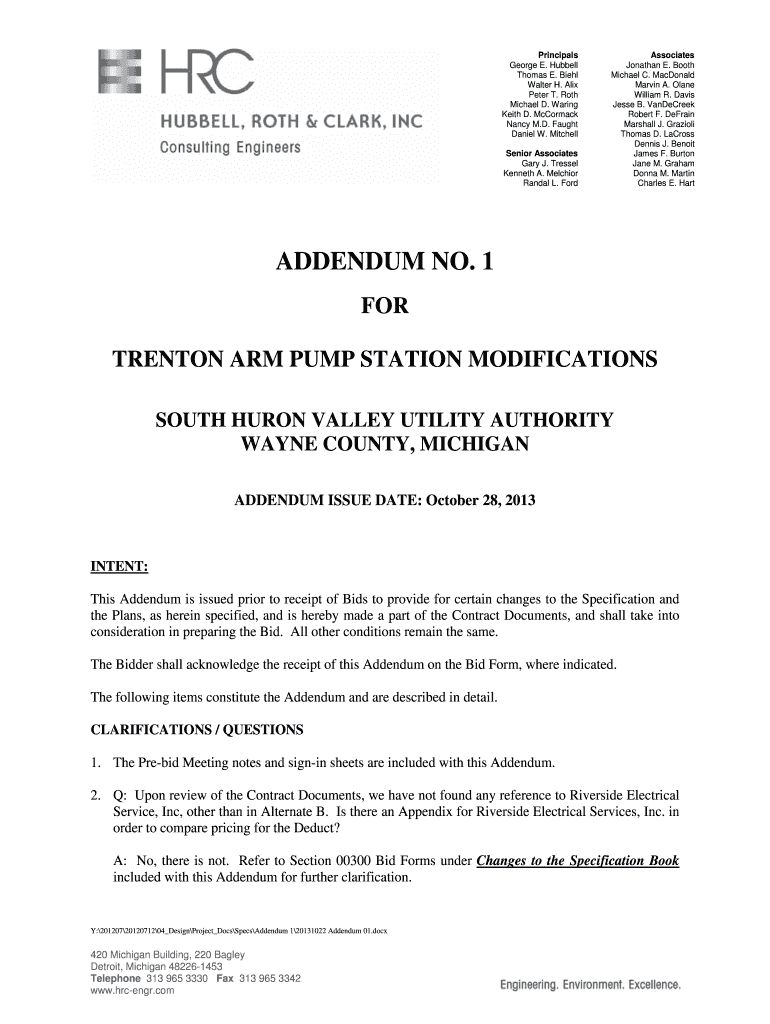 Get the free ADDENDUM NO 1 - Hubbell Roth Clark Inc