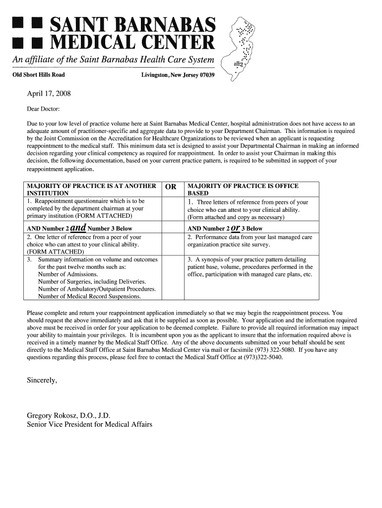 Get the free Due to your low level of practice volume here at Saint Barnabas Medical Center, hosp...
