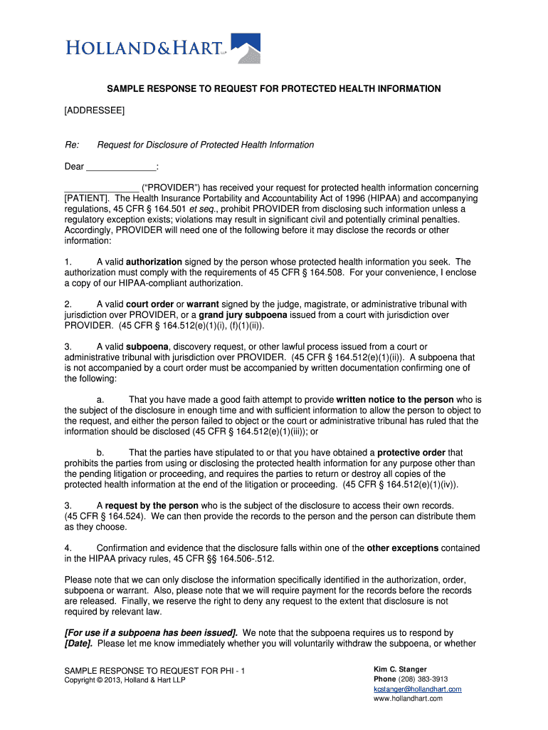 Get the free SAMPLE RESPONSE TO REQUEST FOR PROTECTED HEALTH INFORMATION