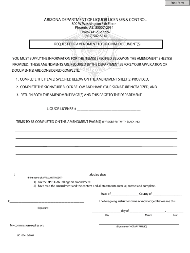 Digital Signature and Notarization for the Arizona Liquor License Amendment Request