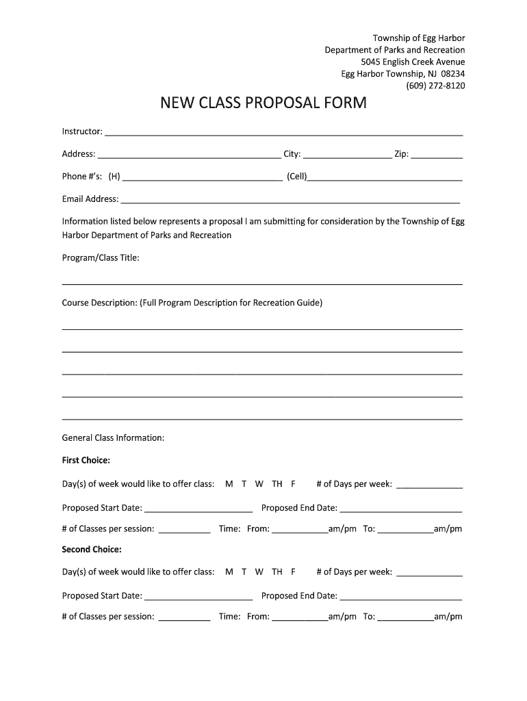 Get the free NEW CLASS PROPOSAL FORM - Egg Harbor Township - ehtgov