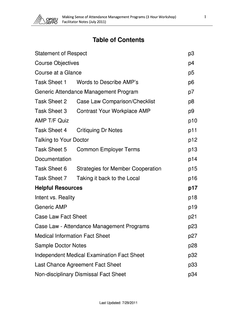 MakingSenseofAttendanceManagementPrograms(3HourWorkshop)1 FacilitatorNotes(July2011) Table of Contents Statement of Respect p3 Course Objectives p4 Course at a Glance p5 Task Sheet 1 Words to Describe