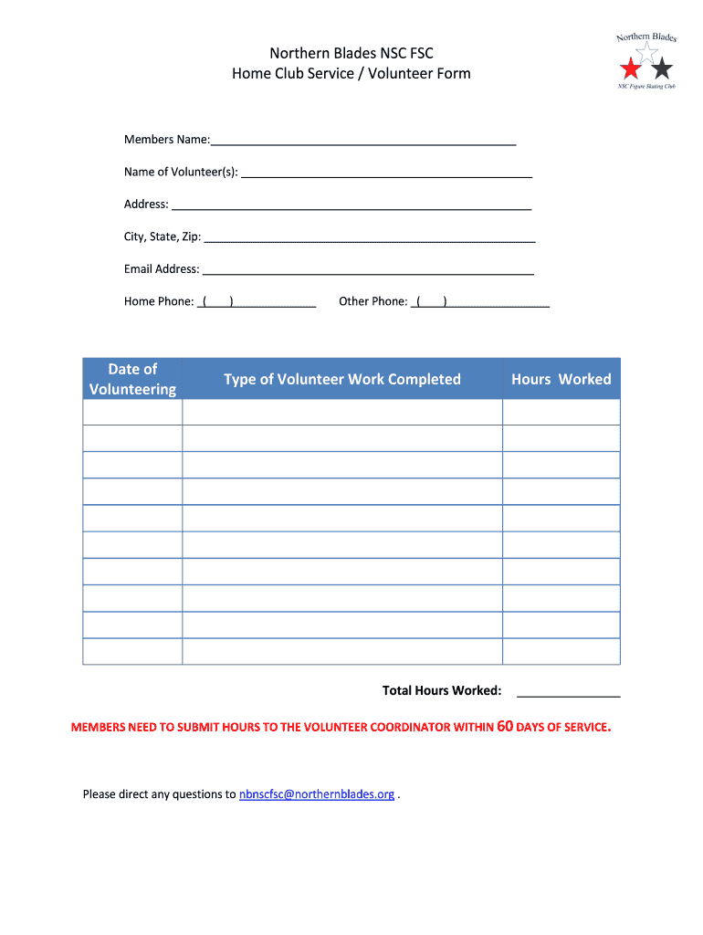 Get the free Northern Blades NSC FSC Home Club Service Volunteer Form - northernblades