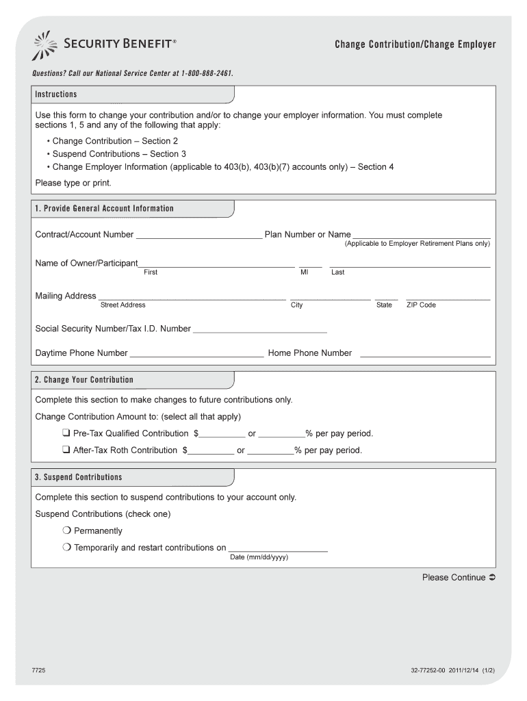 Change Contribution/Change Employer Questions? Call our National Service Center at 18008882461. Instructions Use this form to change your contribution and/or to change your employer information. You