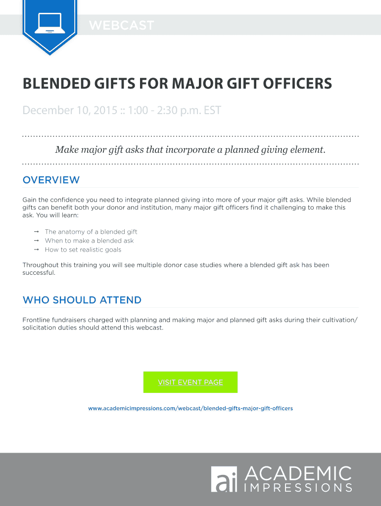 Get the free BLENDED GIFTS FOR MAJOR GIFT OFFICERS - Academic Impressions