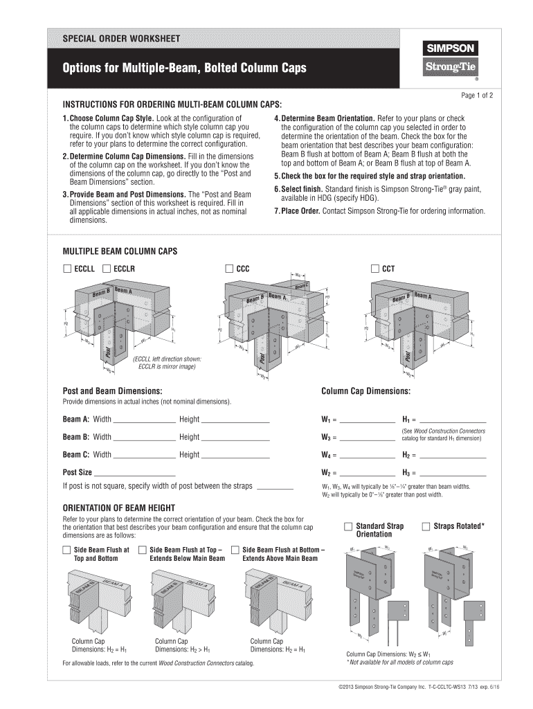 Get the free Special Order Worksheet Options for Multiple-Beam Bolted Column Caps