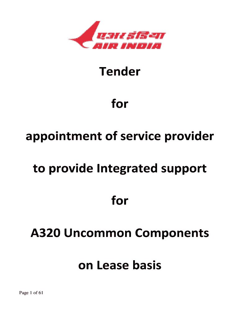 Tender for appointment of service provider to provide Integrated support for A320 Uncommon Components on Lease basis Page 1 of 61 Tender for appointment of service provider to provide integrated support