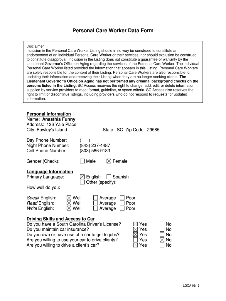Inclusion in the Personal Care Worker Listing should in no way be construed to constitute an