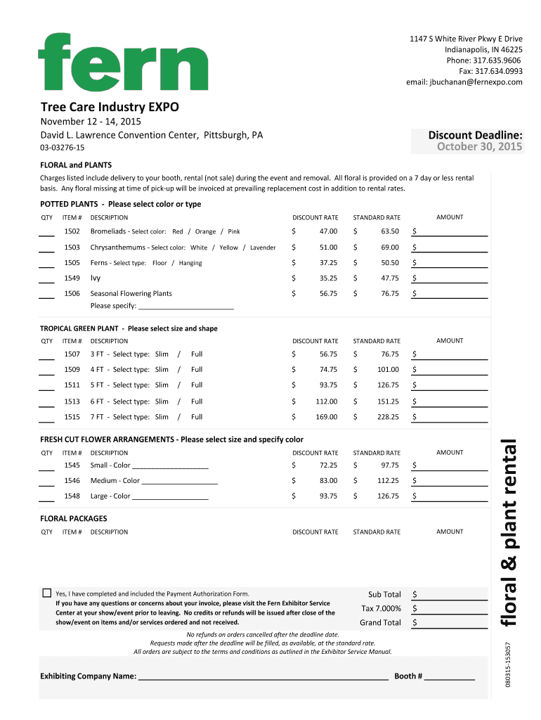 1147 S White River Pkwy E Drive Indianapolis, IN 46225 Phone: 317.635.9606 Fax: 317.634.0993 email: Buchanan fernexpo.com Tree Care Industry EXPO November 12 14, 2015 David L. Lawrence Convention