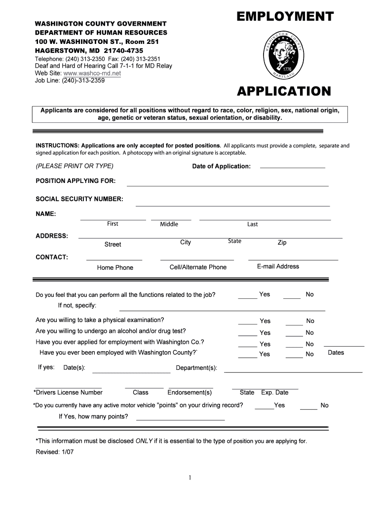 Get the free Washington County Employment Application