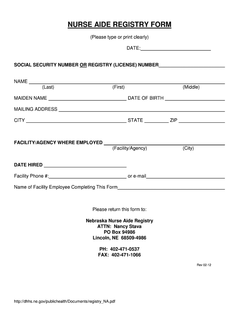 Get the free NURSE AIDE REGISTRY FORM - dhhs ne
