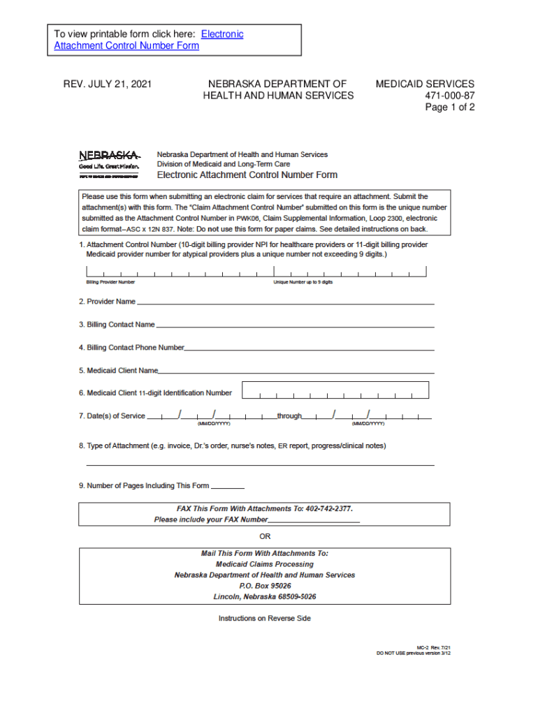 The Electronic Claim Attachment Control Number Form is crucial for healthcare providers in Nebraska because it ensures timely submission, which helps prevent potential payment delays. By utilizing this structured process, providers can enhance their claims submissions and maintain compliance with Medicaid requirements.