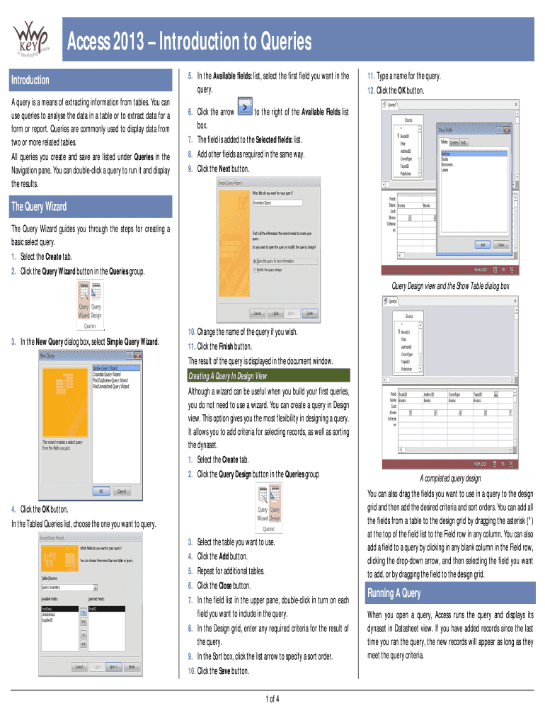 Get the free Access 2013 Introduction to Queries - WWP Training Ltd
