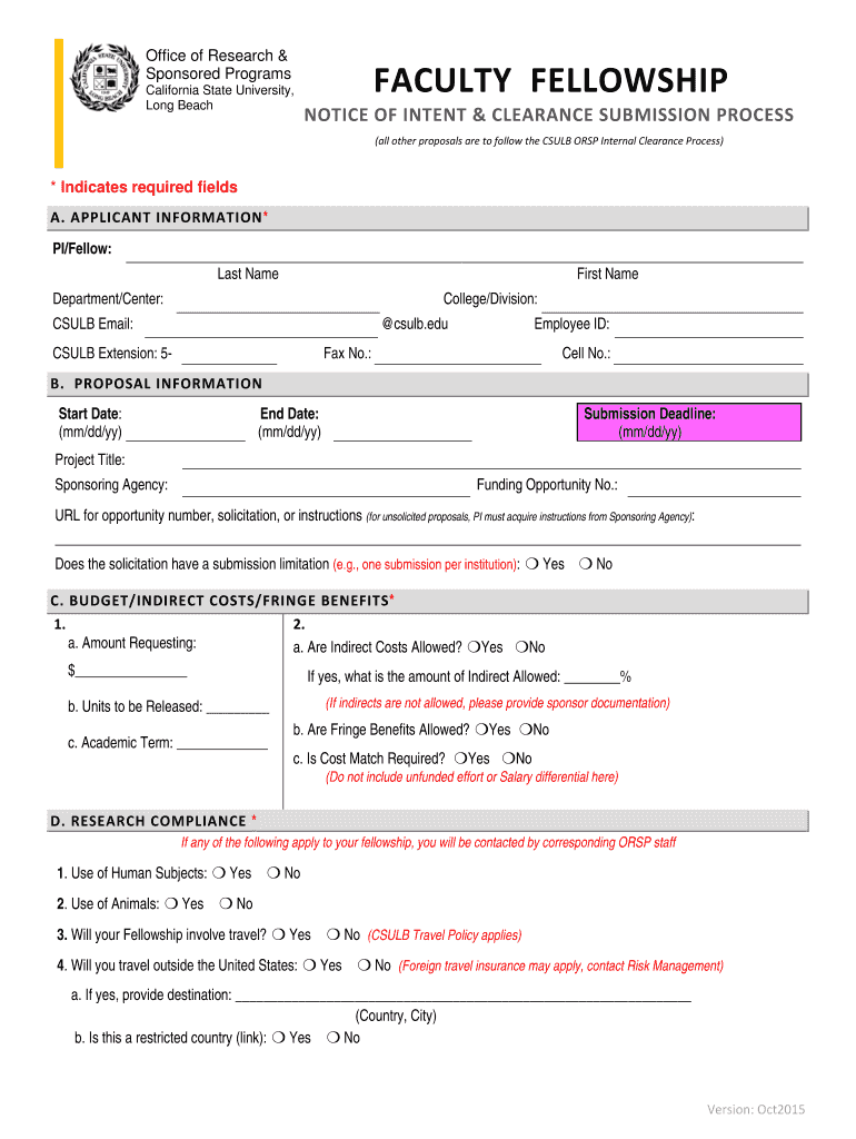 Email to ORSPPreAward could.edu Office of Research & Sponsored Programs California State University, Long Beach FACULTY FELLOWSHIP NOTICE OF INTENT & CLEARANCE SUBMISSION PROCESS (all other proposals